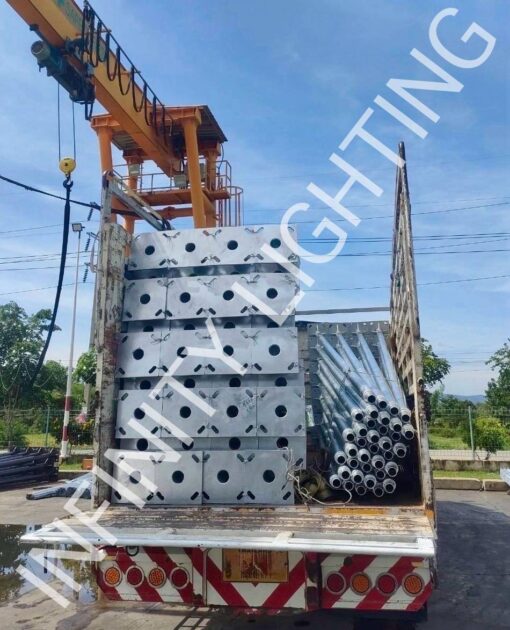 งานเสากลม 3″ สูง 6 เมตร ไม่มีกิ่งปลาย 2″ ชุบกัลวาไนซ์