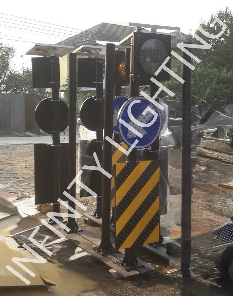 งานเสาไฟจราจร พร้อมป้ายไฟกระพริบโซล่าเซลล์