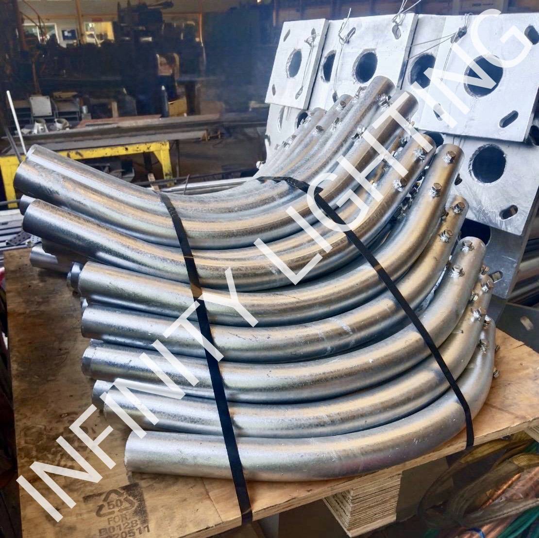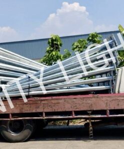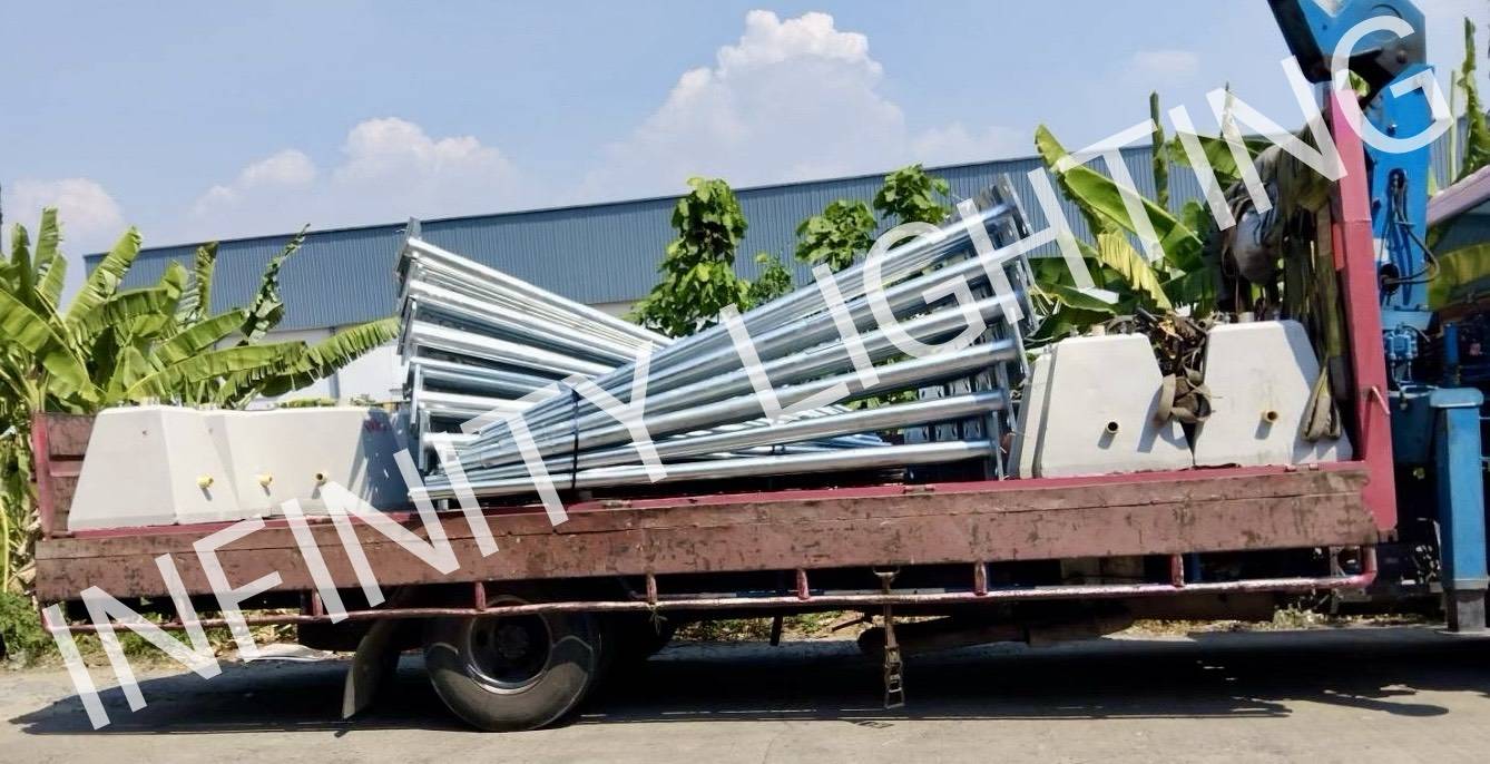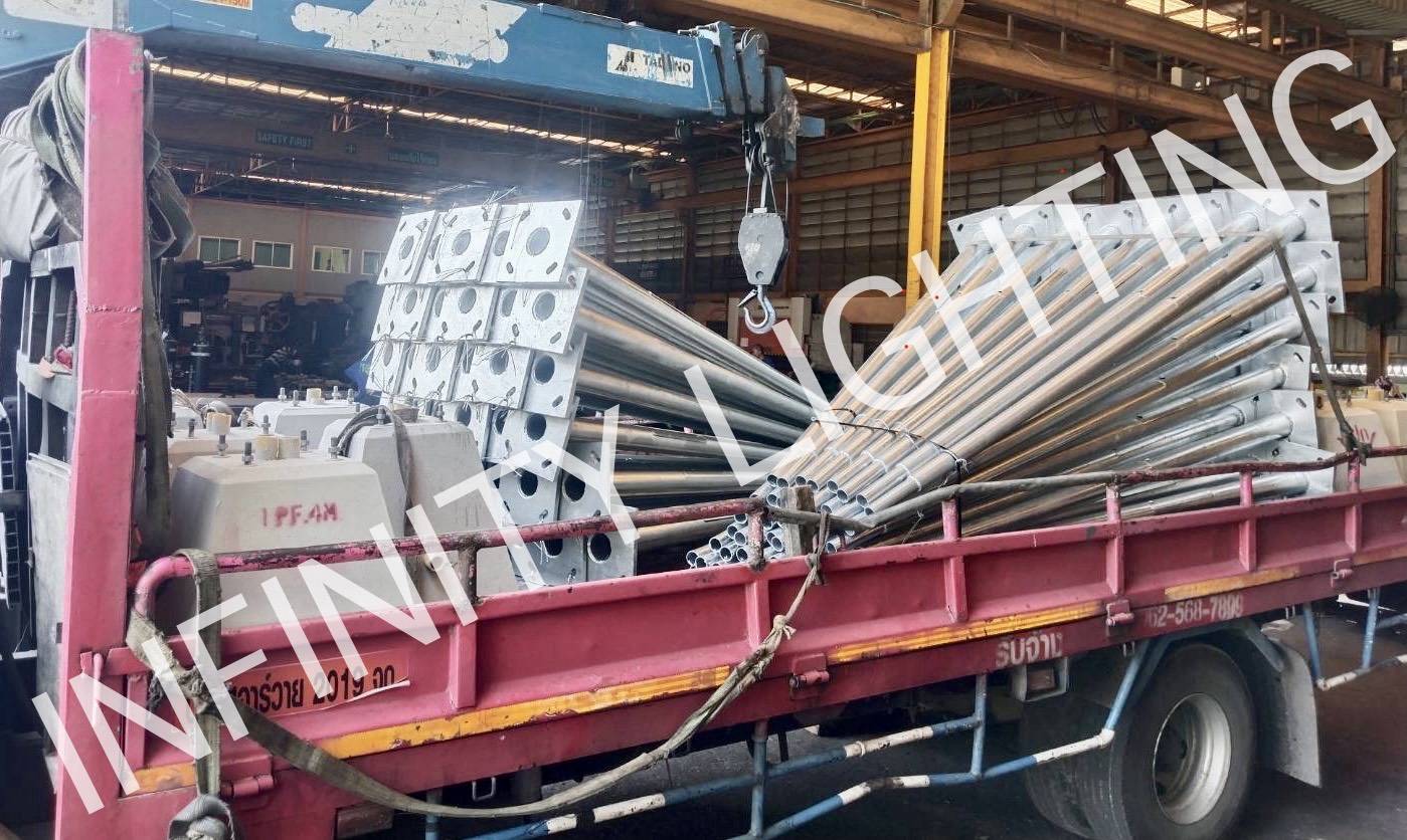 งานเสาไฟถนน สูง 3 เมตร กิ่งเดี่ยว และ กิ่งคู่ ชุบกัลวาไนซ์ พร้อมตอม่อฐานรากเสาไฟ ขนาด 300x600x600mm. ระยะน็อต 200mm.