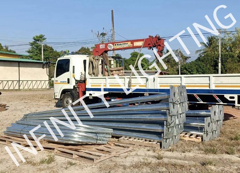 งานเสาไฟถนน สูง 6 เมตร กิ่งเดี่ยว ชุบกัลวาไนซ์