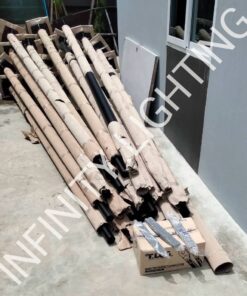 งานเสากลม 3.5″ สูง 4 เมตร ไม่มีกิ่งปลาย 2″ ชุบกัลวาไนซ์+พ่นสีดำด้าน
