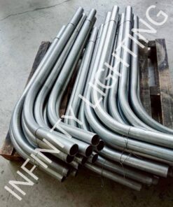 งานกิ่งโคมประปากัลวาไนซ์ 2″ ยื่น 1เมตร R300 คาดเหลือง + ขายึดตาย 2″